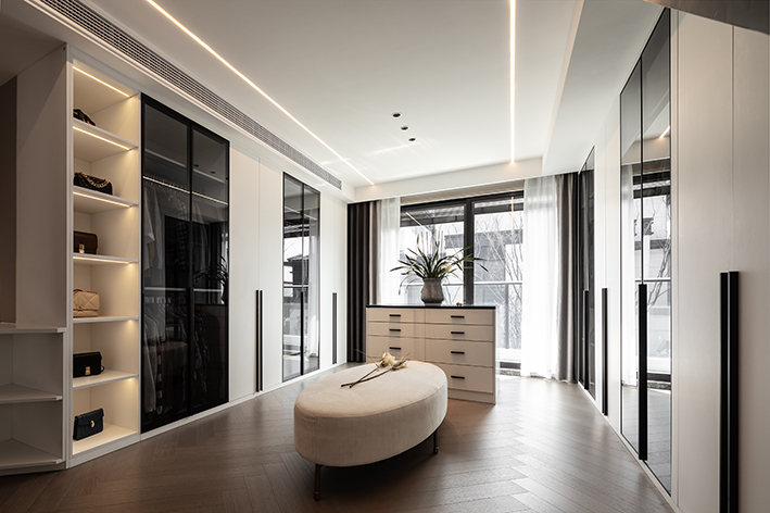 鞋柜作為每天出門進門必須經(jīng)過的區(qū)域,出門前整理下自身的行頭還是很重要的,鏡子在這時就顯得非常重要。